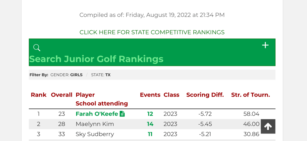 | AJGA Sergio and Angela Garcia Junior Championship | March 18-20, 2022 | 2nd Place |